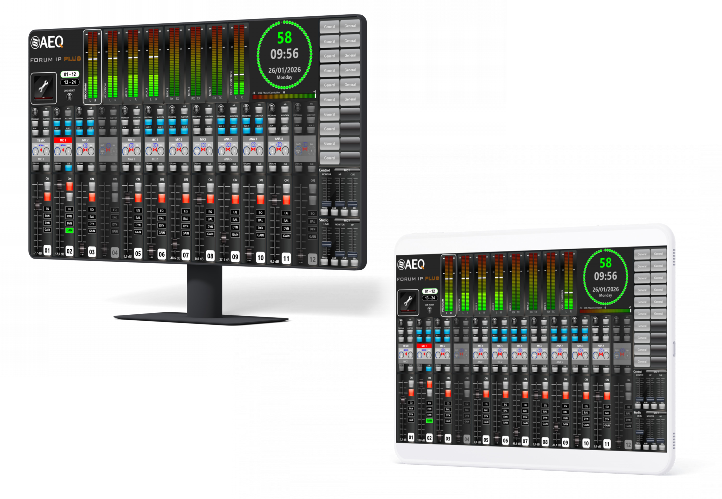 ATRIUM je digitální audio mixážní pult speciálně navržený pro rozhlasovou a televizní produkci a vysílání v těch nejnáročnějších pracovních podmínkách. Zvládá až 1000 kanálů lokálního nebo IP audia ovládaných přes jednu či více ovládacích ploch, z nichž každá disponuje až 90 motorizovanými fadery s možností přepínání vrstev (stránek).