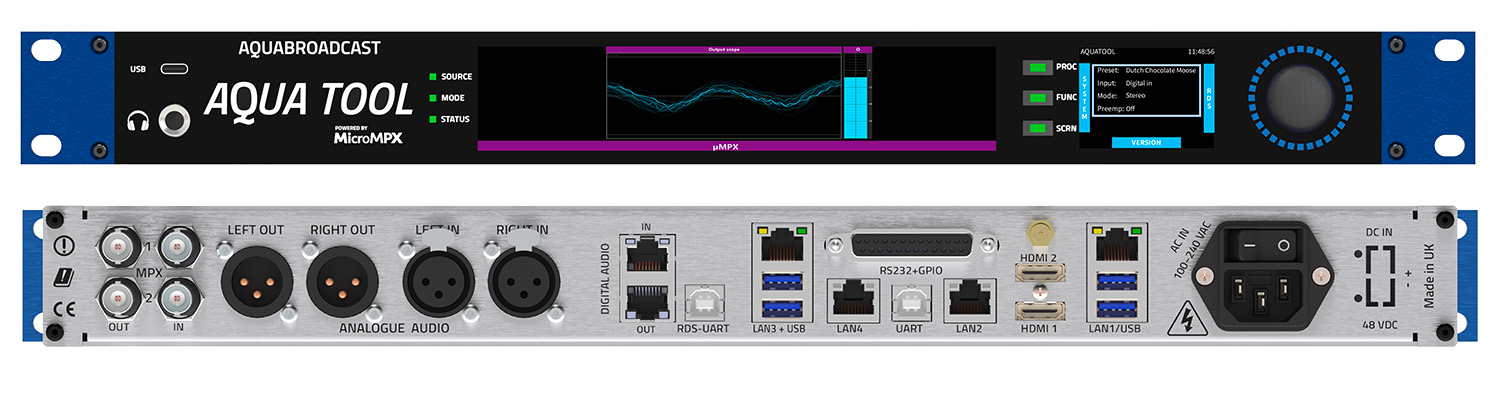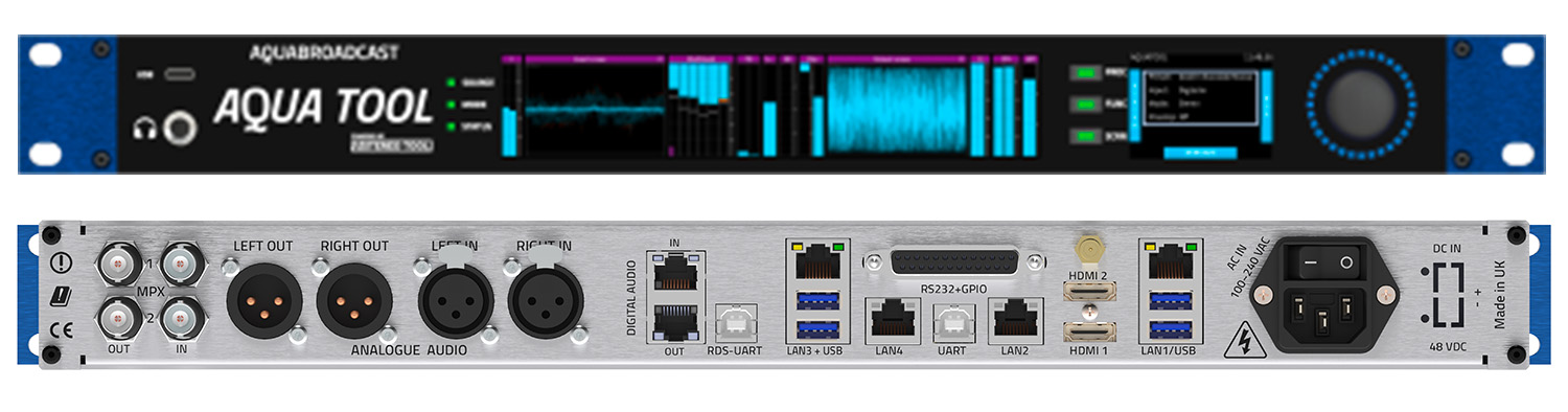 Aqua Tool od Aqua Broadcast je prémiový FM modulační procesor který spojuje špičkový hardware od Aqua Broadcast s oceňovaným softwarem Stereo Tool od Thimeo Audio Technology. Výsledkem je odvážné, čisté, dynamické a úderné zpracování zvuku, které nabízí prémiový výkon bez prémiové ceny.