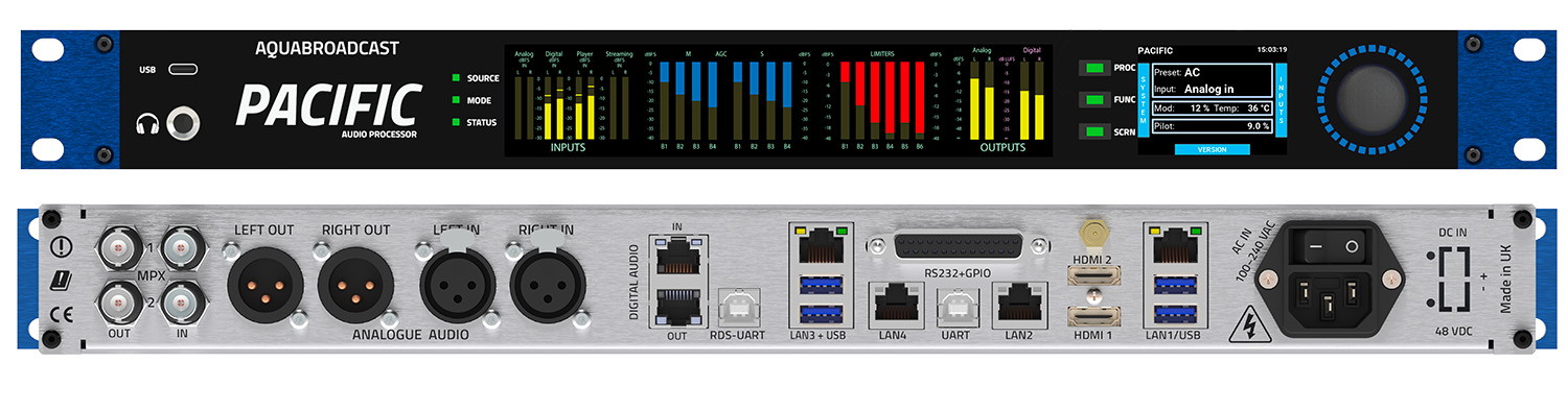 Aqua Broadcast Pacific je víc než jen audio procesor. Je to komplexní zvuková jednotka vytvořená pro moderní FM stanice, které vyžadují čistotu, flexibilitu a absolutní spolehlivost.